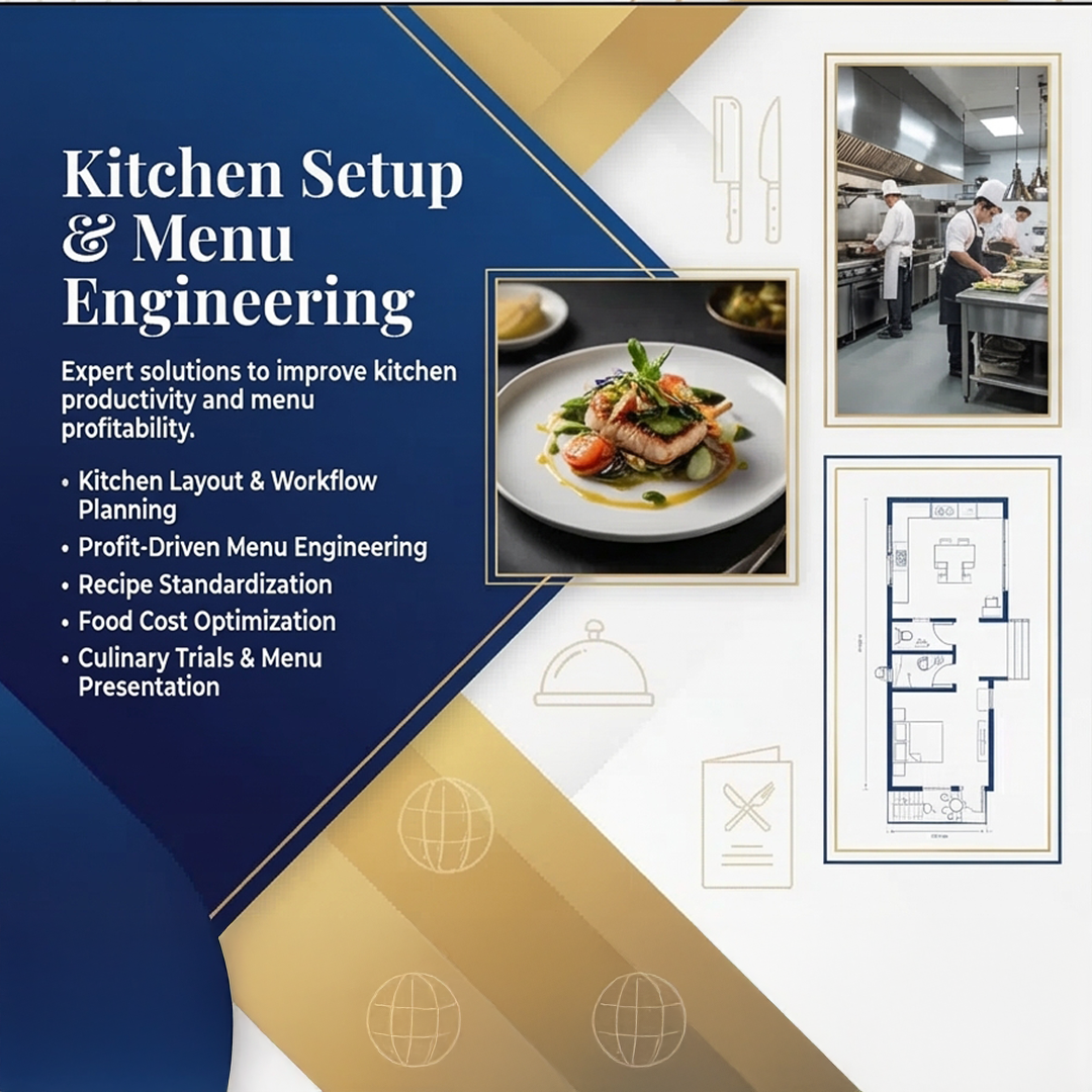 Complete solutions including consulting, staff training, kitchen setup, marketing and business growth strategies.